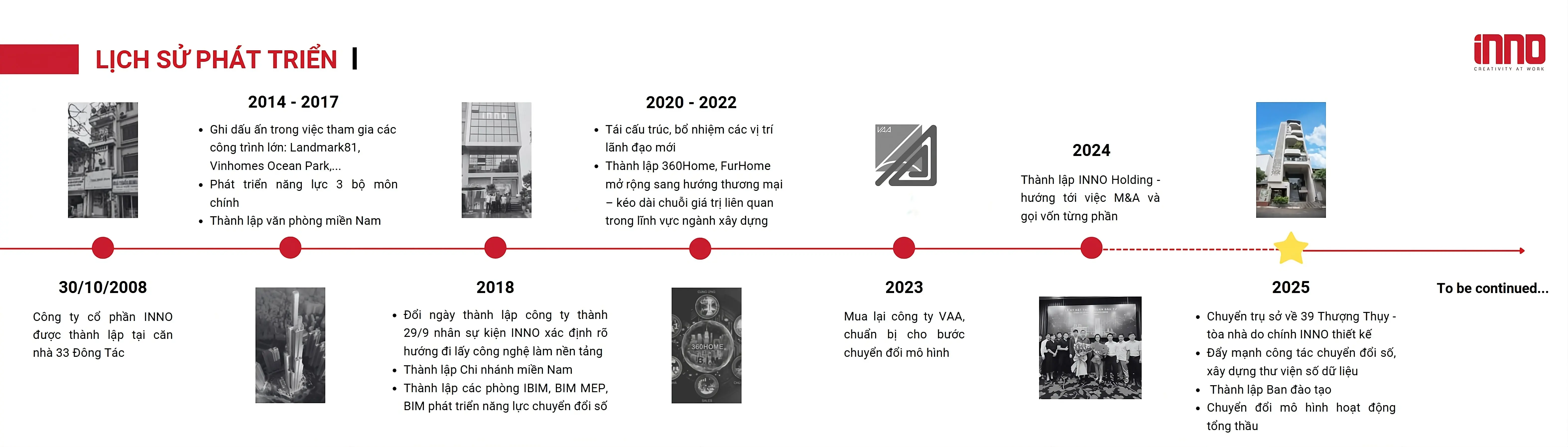 Từ năm 2008, INNO đã phát triển thành một trong những công ty tư vấn thiết kế uy tín nhất Việt Nam, quy tụ mạng lưới chuyên gia hàng đầu trong các lĩnh vực: Kiến trúc, Quy hoạch, Kết cấu, MEP, PCCC, Nội thất, Cảnh quan, Hạ tầng và Kinh tế xây dựng.